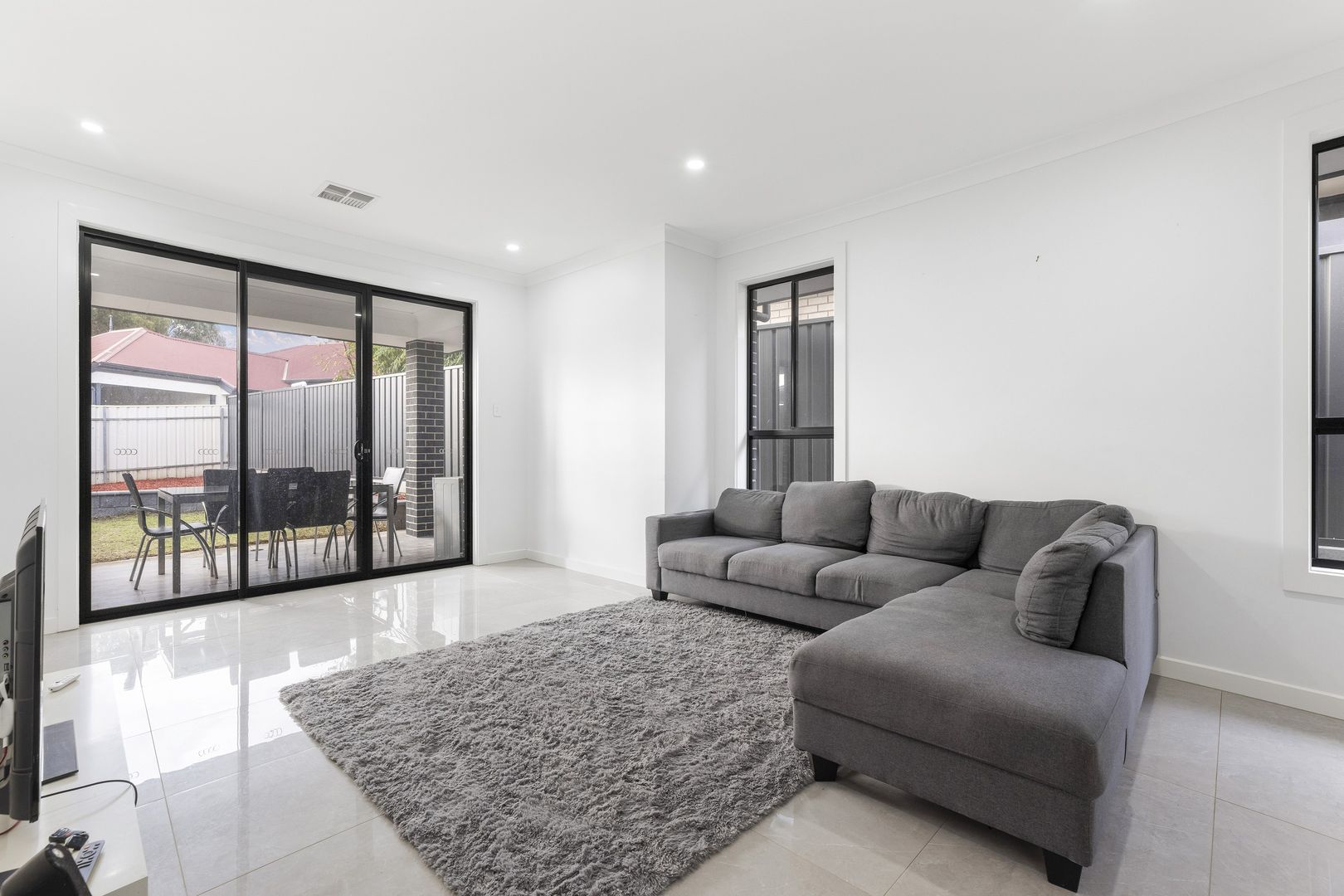Open-plan living and dining area at the rear